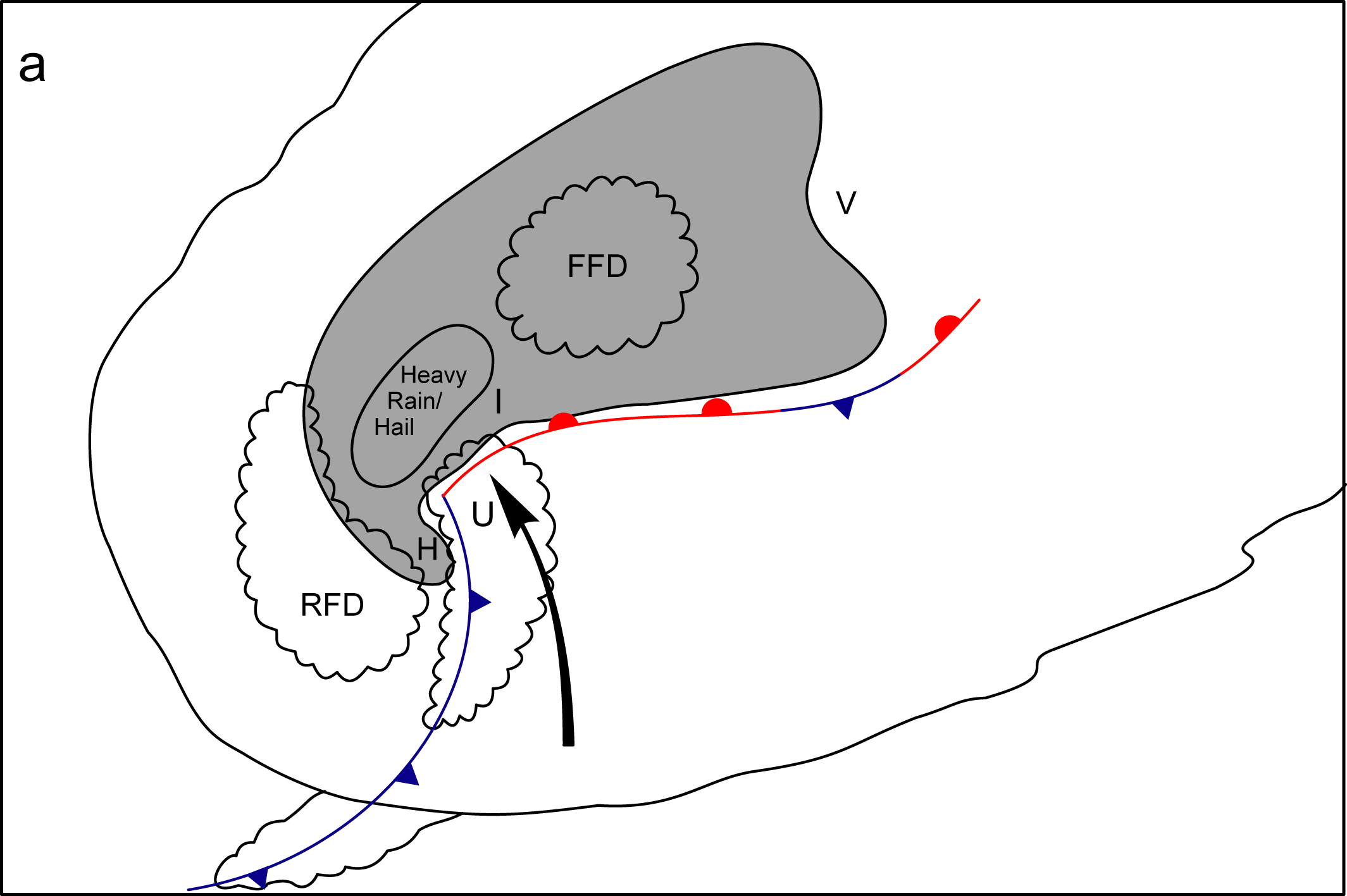 This event had precise weather ingredients that lead up to it that were recorded as accessible data for the supercomputer associated with a certain numerical weather forecasting model. This model, maybe even many years later is able to coordinate this past data with current weather observations and say that the conditions are very close right now to this past event. As such it provides us chasers with this data in a format we are used to looking at, which would be weather observation tools like a map of the US or more localized sectors with overlays of certain conditions like wind speed/direction and moisture, all at different heights of the atmosphere. Since the model has provided us with a close to match to this event, we might start to see the ingredients it takes to begin planning a storm chase in the near future. The different types of information we look for from these models is vast but at the very core of severe weather forecasting lies the atmospheric rivers we call jet streams. Our interest lies with the mid-latitude jet that focuses itself over the continental U.S. This jet stream is high over our heads, near the altitude of where commercial airlines fly. You might have noticed a flight you took be aided or hindered by the jet and location and strength that day.