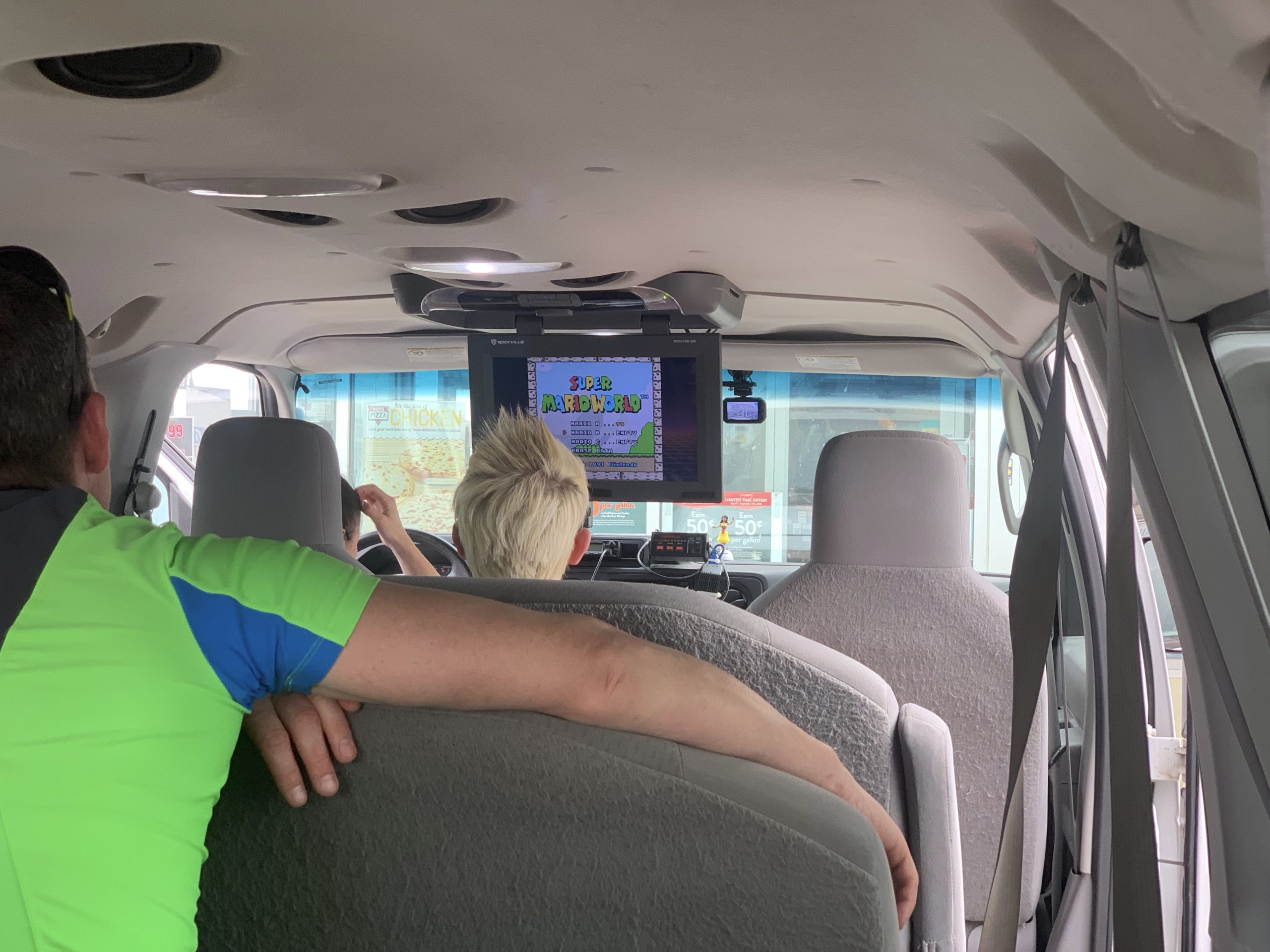 So now that you’re up to date on what a chase day with us looks like from beginning to end and all of the details that go with it, you might be asking yourself just how many of those days do we get on tour and what do we do if there is an “off” day. Actually, we have three types of days on tour; “chase” days, “travel” days and “down” days. Chase days have already been explained in detail so we will concentrate on the travel and down days. Travel days are pretty self-explanatory as well and mean that we are just pushing forward to get closer to our next location for storm chances. Along the way these might hybridize into down day activities depending on location we are traveling in and time allowed. While travelling we make sure you are comfortable, never putting more than 6-7 guests in our 15 passenger vans at a time, that allows you to have some room on either side of you and a window seat. The vans have AC (home style) power plugs and USB ports for charging, a 17” drop down HD LCD monitor that we play movies on (like Twister!) and our personal best storm footage, as well as Nintendo video games, wireless headphones and upgraded sound systems with satellite radio. We also keep a large cooler in the back with ice cold water for all of our guests.