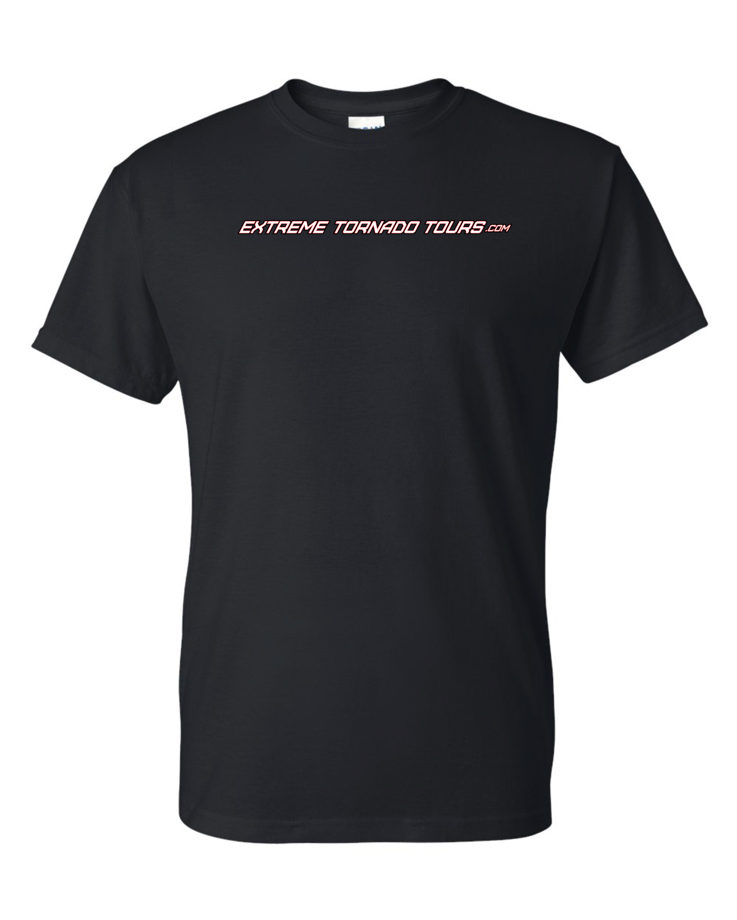 We wanted to offer our standard long text ETT logo at an affordable price to those who want to rep our brand on a shirt. Our Extreme Tornado Tours text is placed front and center on the shirt as shown and is printed on high quality Gildan Dry Blend shirts.